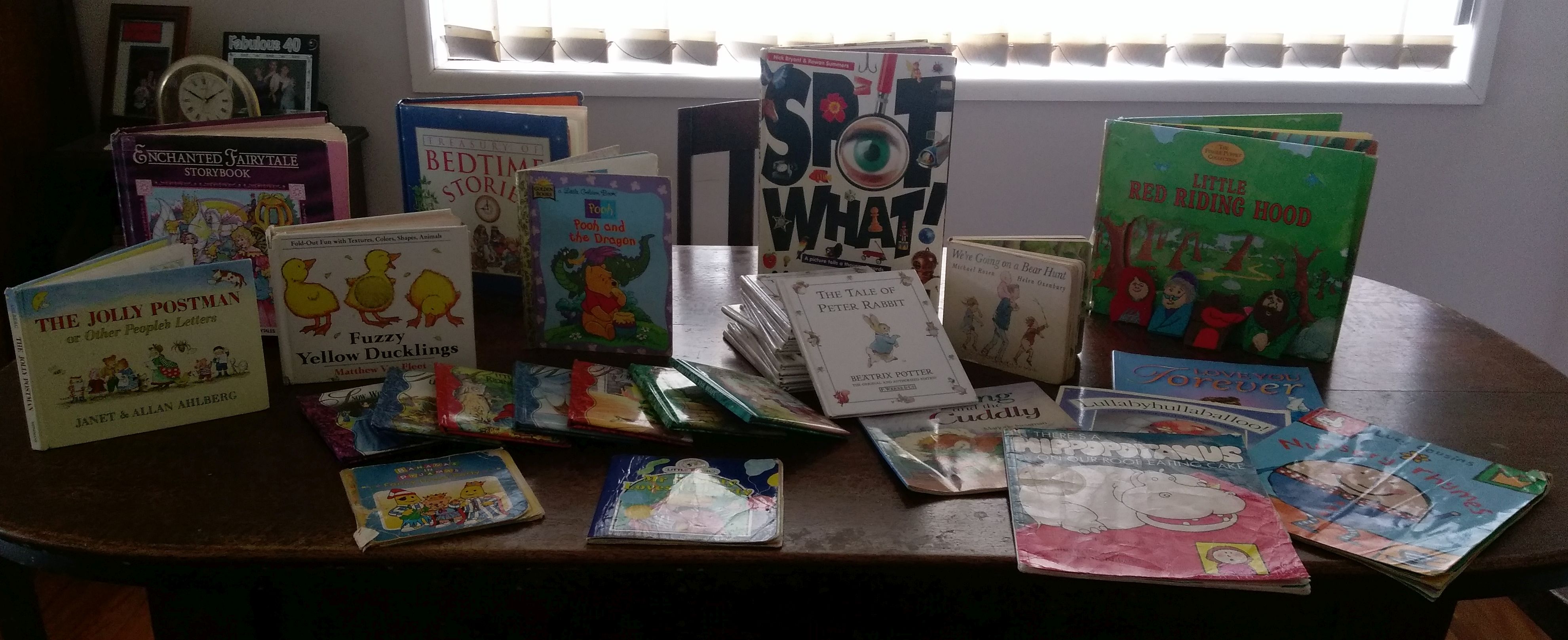 However reading was a huge part of their life before school. We read bedtime stories to both children from when they were babies. Starting with little chunky board books before moving onto picture books when they were toddlers. “Stop said the man in blue. He is a policeman.” is a page that we can still recite from one of the very first board books we owned. Some of the picture books have been taped back together as they were loved so much. We have kept many of the favourite picture books, though we often borrowed from the local library.