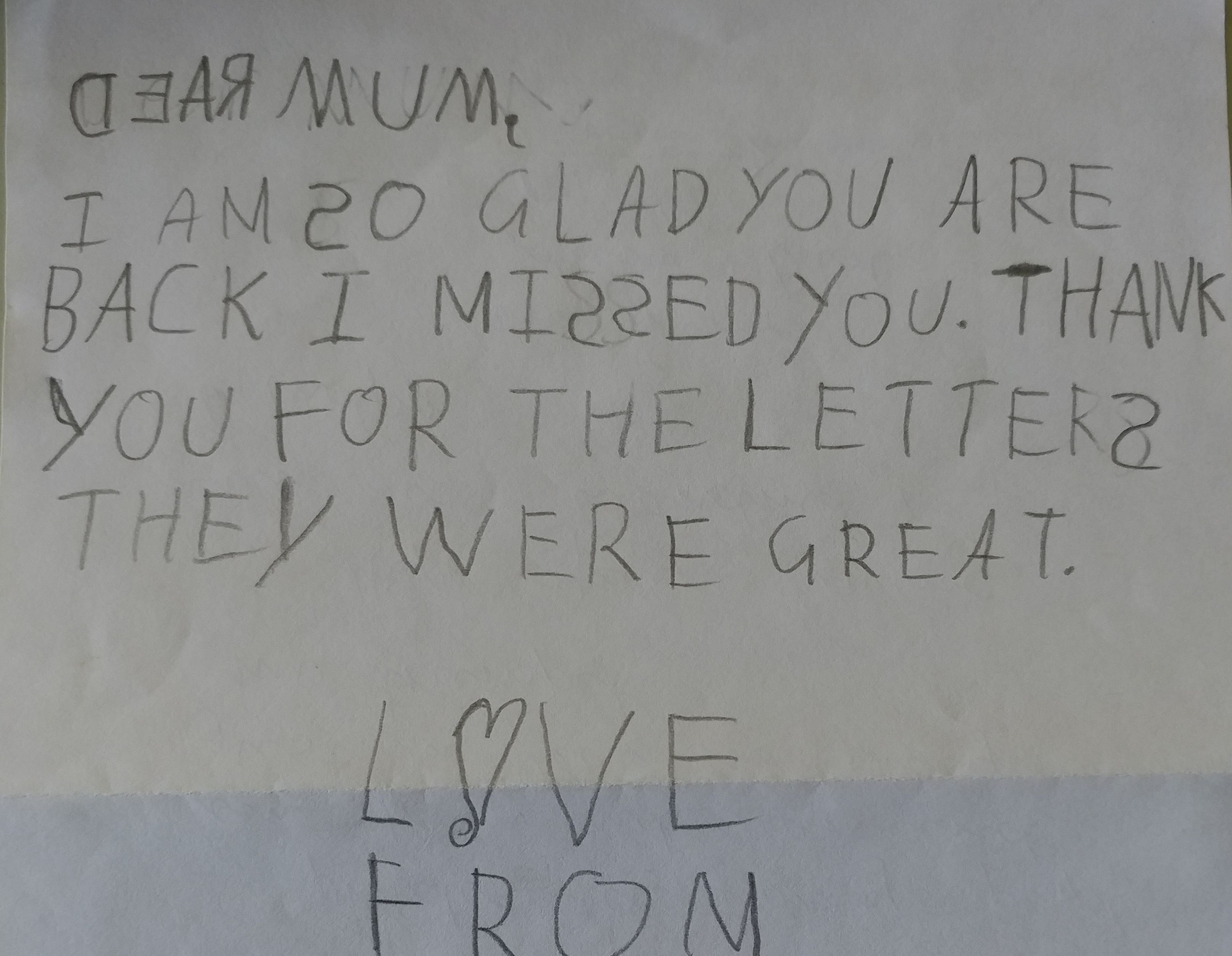 I think my son appreciated the notes the most. His love language is Words of Affirmation, so I think this really spoke to him. He wrote back on one of the notes which I have kept & is pictured. You can see where he has added in pencil. He was trying to using fancy mirror writing.
