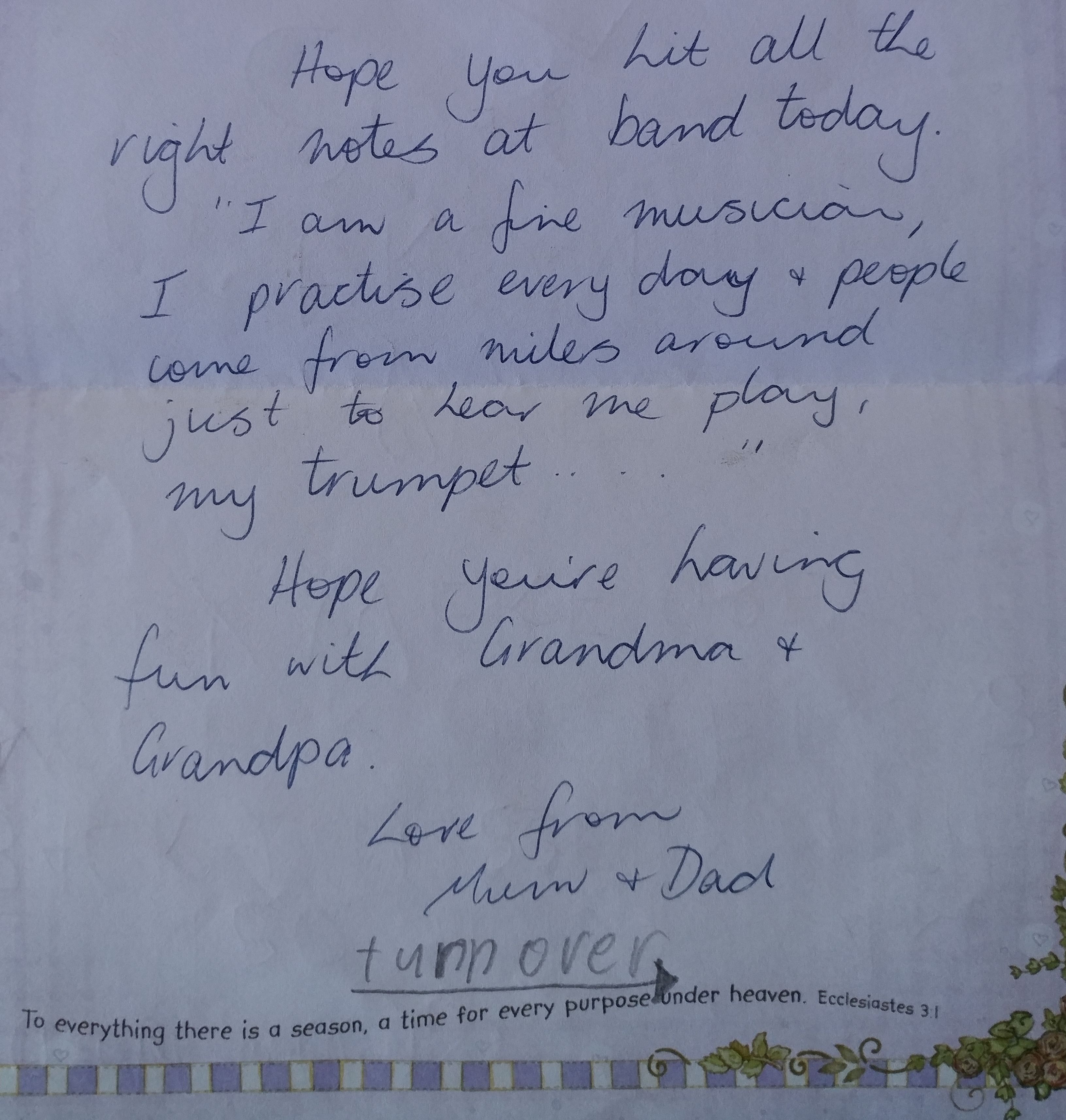 Somewhere I’d seen the idea of leaving notes for your children for when you are away. This particular time I was organised enough and wrote a note for each day that we were away. They stayed with both sets of grandparents while we were away so I labeled each envelope with “(name) for (day & date)”. I tried to think ahead about what they would be doing and talking about that or asking questions about their day. They were short notes but it let them know that we were thinking about them.