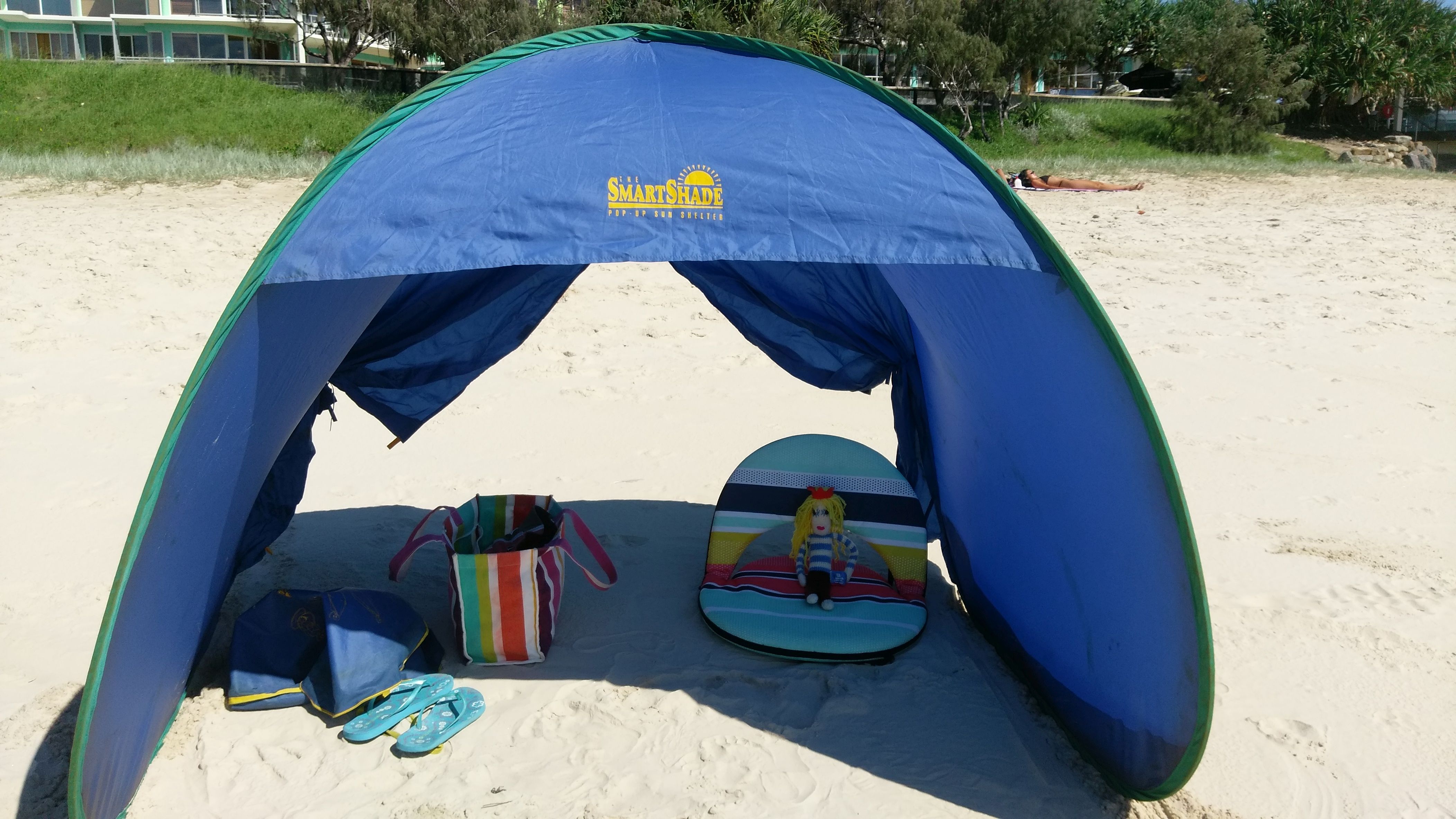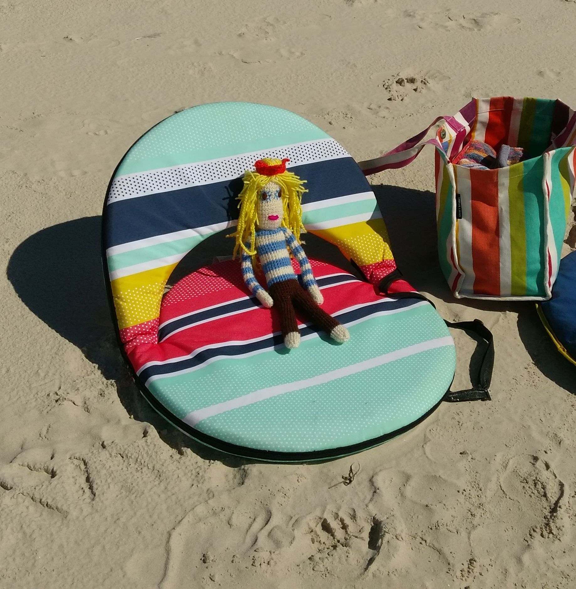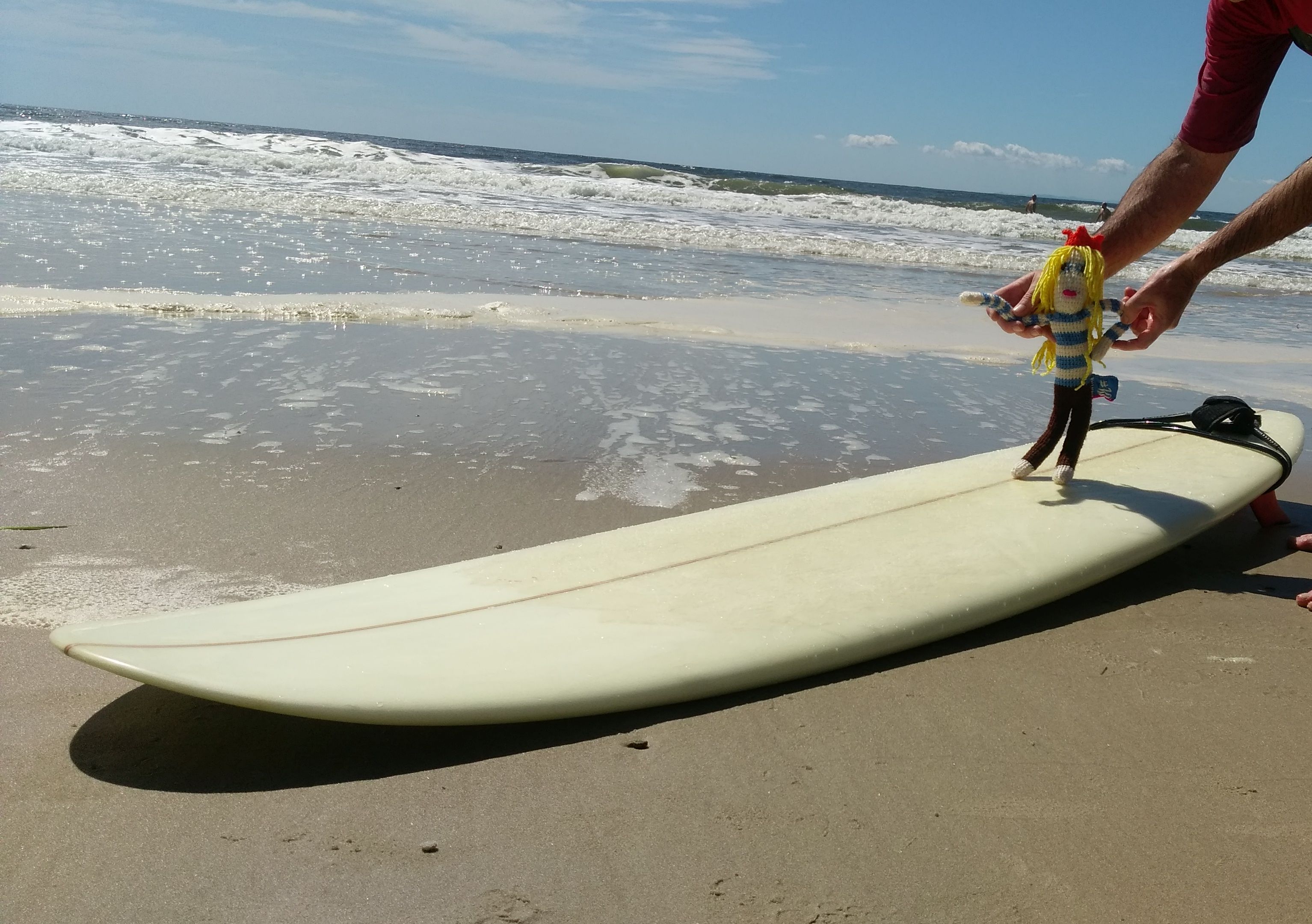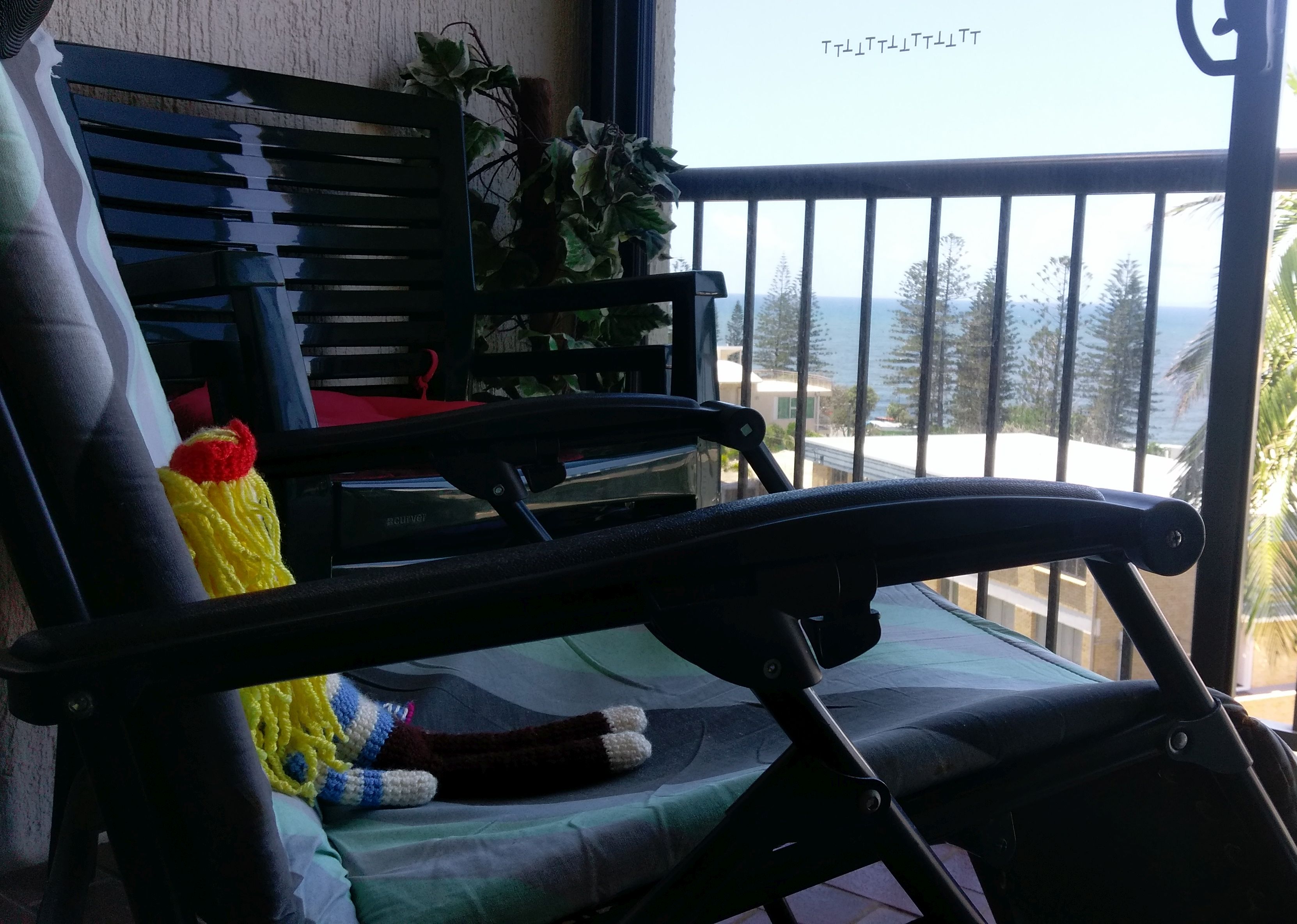 A few months ago I was sent a Little Anna Doll from Anna at Beach Books Blog. Anna’s dream is to open a bookshop by the sea with books about the sea. She sends dolls to people all around the world to take photos at beaches that they visit. Here are some photos of Anna at Kings Beach, Caloundra & on our unit balcony.