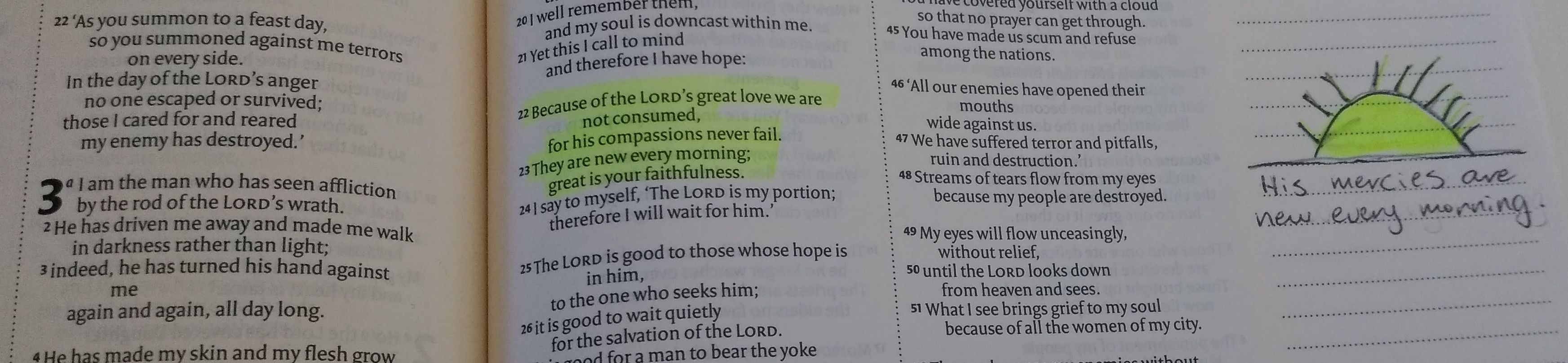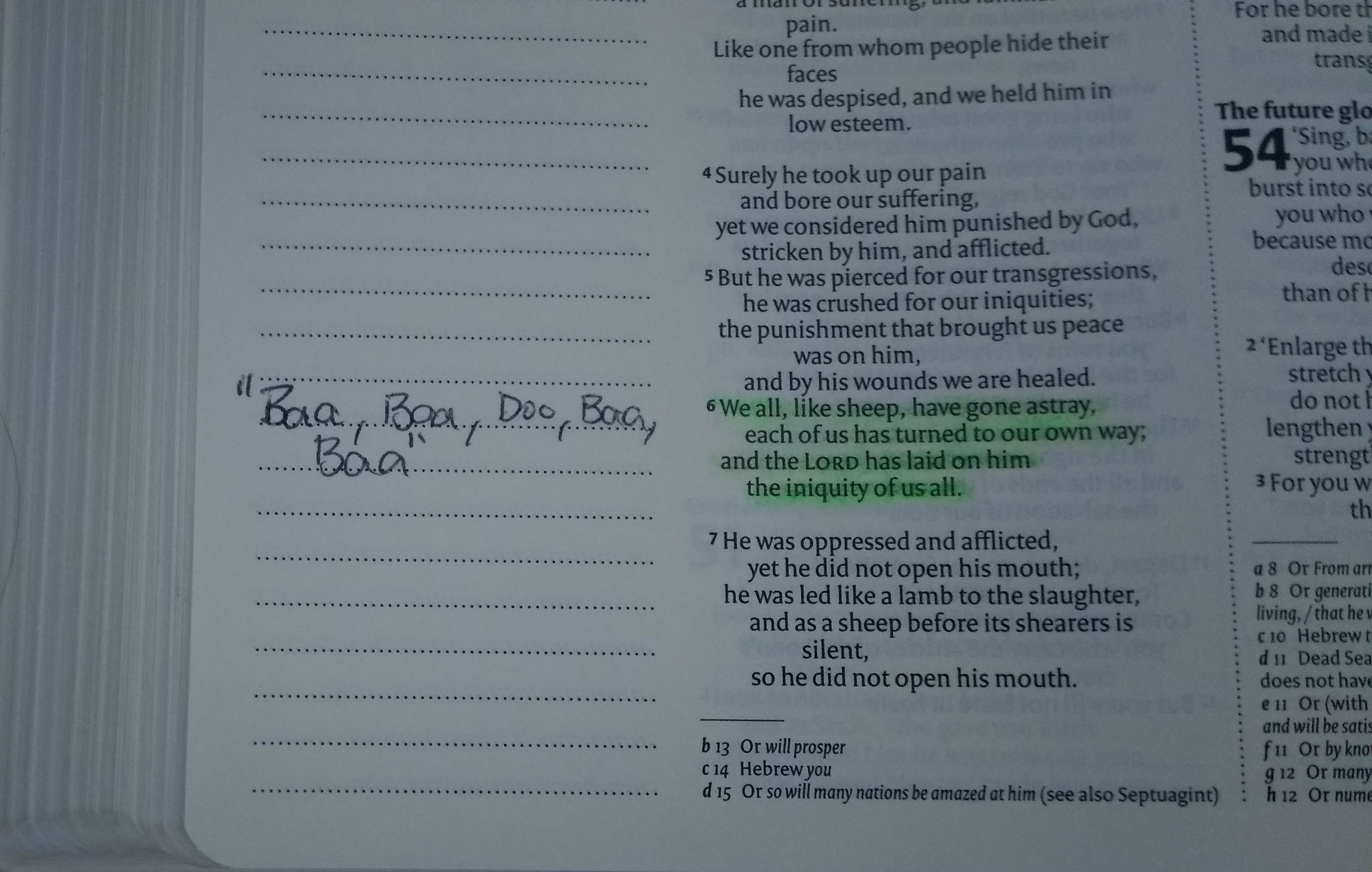 As you can see from the pictures above there is a mix of drawing and writing. Some people wrote about the same verses as others or added to what was already highlighted, so whole sections became highlighted.