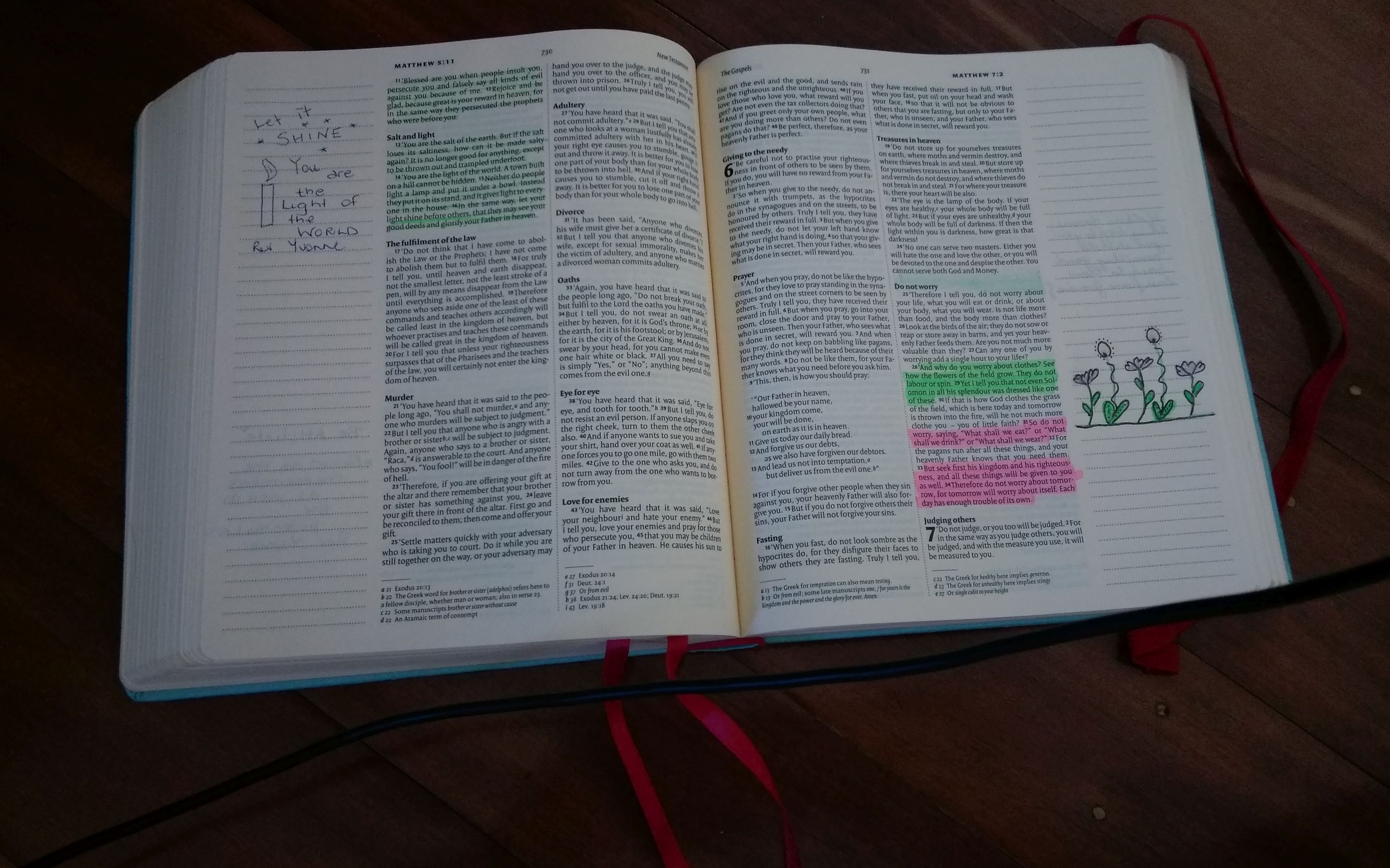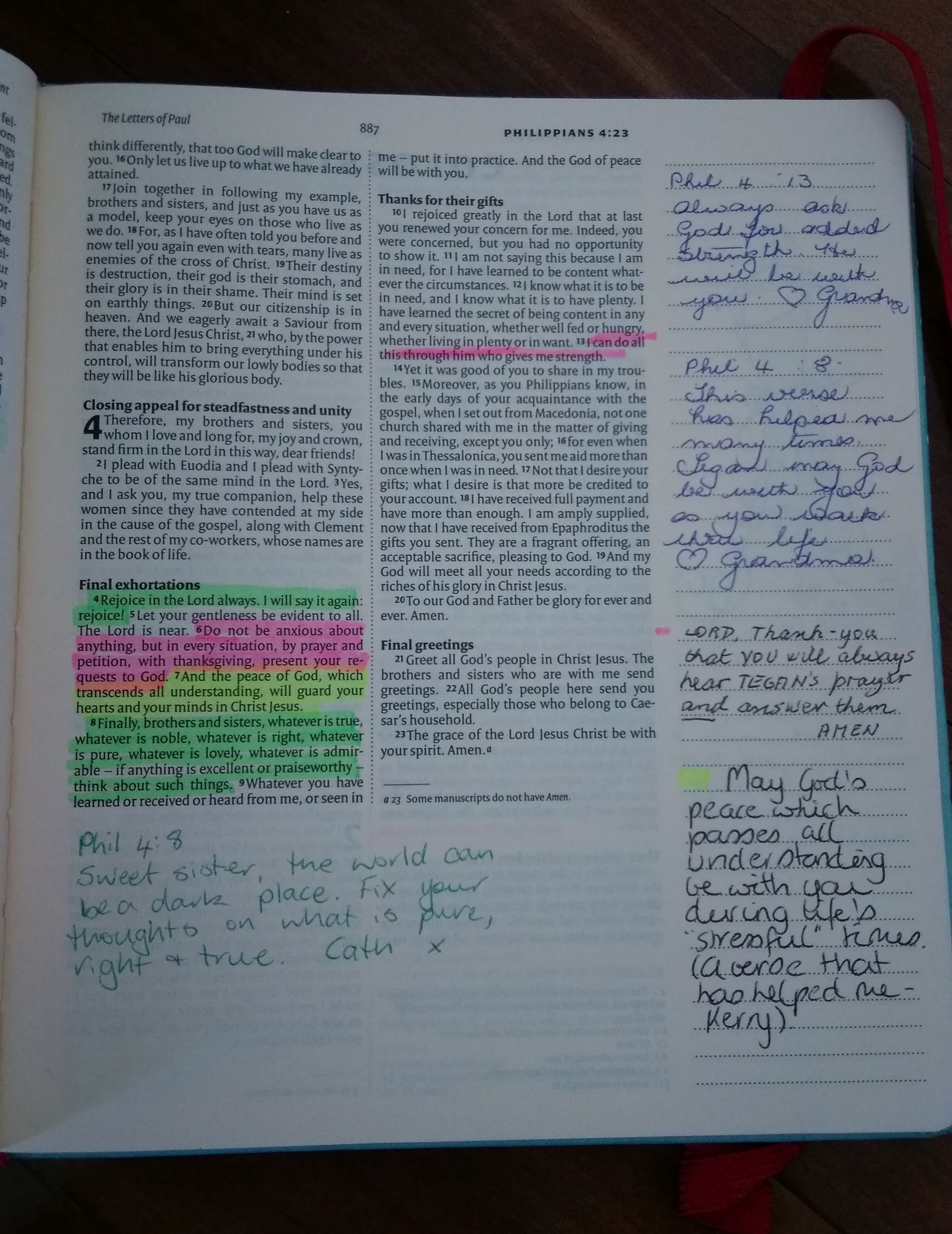 Why am I writing about this now? We are doing the same for my son who graduates from High School in about 6 months time. (Shh, don’t tell him. Not that I think he reads my blog.) He may have some idea that this is happening as he knows about his sister’s Bible. We will get some of the men from church to highlight their favourite passages and write messages.